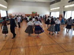 | 115名参加。 今年は初めての試みで、午前中はレクダンス、午後はフォークダンスとプログラムを分けて計画しました。参加しやすかったと好評でした。 2024年度の講習曲を中心に楽しみました。 |