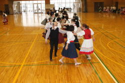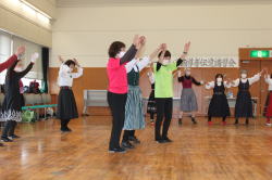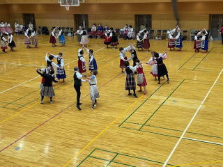 ![]() POEMフォークダンスクラブが出演し、 ハ、ハル・ハ、ヤローク ポロネーズ ロシアン・スイート 365日の紙飛行機の4曲を踊りました。 |
