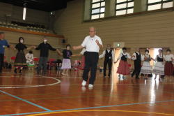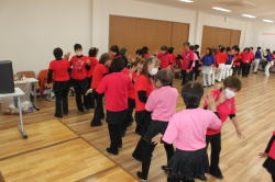 | 午後からの交流会には100人以上の日連会員が集まり、民踊、ラウンドダンス、スクェアダンス、 カントリーダンス、レクダンス、フォークダンスを楽しみました。 でも専門外のダンスはやっぱり難しい! |