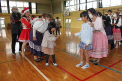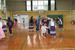 | 明るい体育館で子ども達とフォークダンスを楽しみました。 セブンジャンプやイエシュ・ラヌ・タイシュは今回も大受けでした。 ギターに合わせて歌ったりゲームをしたり、サンタさんからは お菓子や手作りサンタブーツをのプレゼントをもらったりして 子ども達は大喜びでした。 玉野の会員さんには特にお世話になりました。ありがとうございました。 |