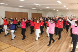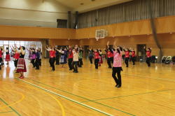 | 今年度は各団体からの参加人数に制限をしませんでした。56名の参加で26曲を踊りきりました。 昨年より年を取っているはずなのに、笑顔とパワフルな踊りに感動!まだまだいける!! |