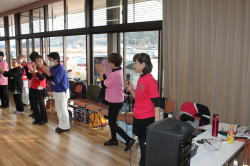 | 岡先生の軽快な指導で講習曲を何とか踊ることが出来ました。サパティオのステップ(速くて難しい)練習あるのみ!! 例会でも踊れるように「ガンバロー」…と思います。 岡先生。ありがとうございました。 |
