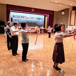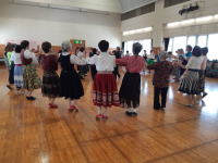 | 115名参加。 今年は初めての試みで、午前中はレクダンス、午後はフォークダンスとプログラムを分けて計画しました。参加しやすかったと好評でした。 2024年度の講習曲を中心に楽しみました。 |