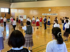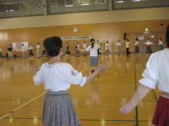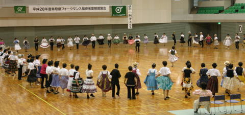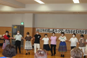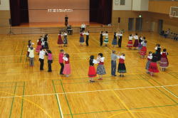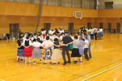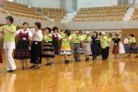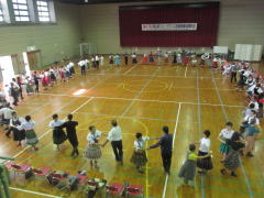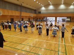 若い先生方がたくさん参加してくれて嬉しかったです。 フォークダンス曲 7曲 レクリエーション曲 2曲 民踊 3曲 楽しい曲を12曲も紹介できました。 |