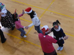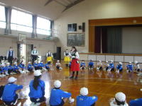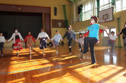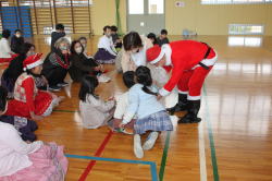 | 明るい体育館で子ども達とフォークダンスを楽しみました。 セブンジャンプやイエシュ・ラヌ・タイシュは今回も大受けでした。 ギターに合わせて歌ったりゲームをしたり、サンタさんからは お菓子や手作りサンタブーツをのプレゼントをもらったりして 子ども達は大喜びでした。 玉野の会員さんには特にお世話になりました。ありがとうございました。 |