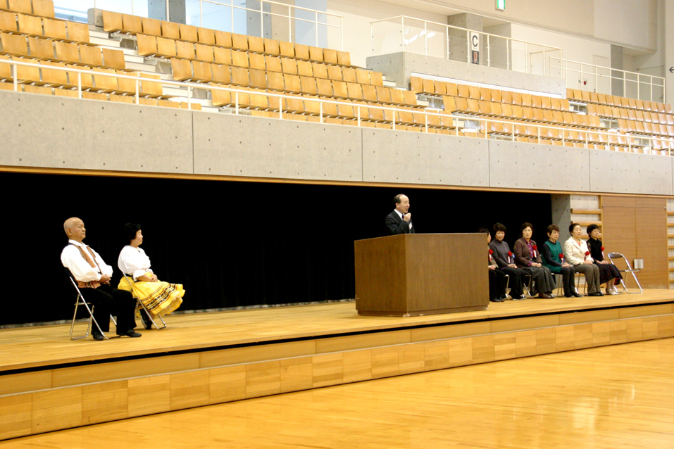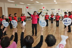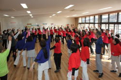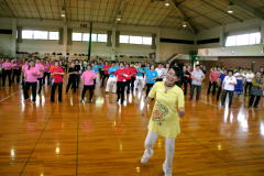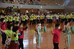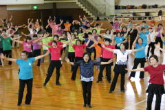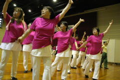 | 今年度は各団体からの参加人数に制限をしませんでした。56名の参加で26曲を踊りきりました。 昨年より年を取っているはずなのに、笑顔とパワフルな踊りに感動!まだまだいける!! |
