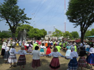 | 晴れ渡った秋空の下、70名のダンサーが集いました。 今年は3連休でもあり、外国からの観光客が多く、 飛び入りのちびっ子や一般参加者で盛り上がりました。 これを機にフォークダンスの輪が広がるように願っています。 |