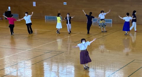 | 42名参加。 体力を使う踊り、優雅なワルツ、間違えても楽しい踊り、かっこいいE.C.Dなど特徴のある踊りでとても楽しかったです。 |