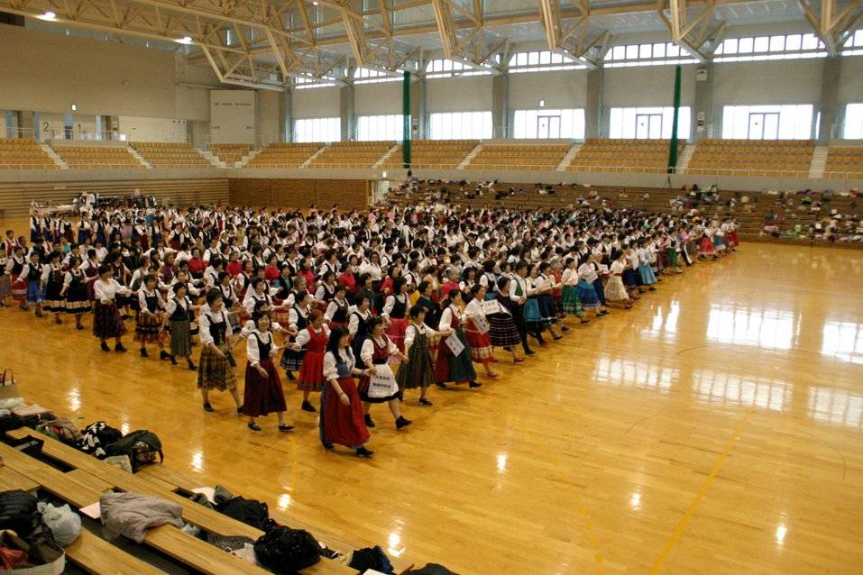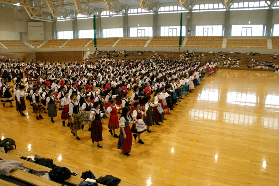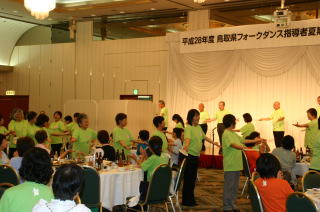 | サマー指導者講習会(鳥取)を終えて 鳥取自動車道が繋がって快適なドライブを楽しみました。会場は広く余裕をもって踊れました。曲目は少し骨のある踊りでしたが、小鮒先生の熱心な指導で何とか克服できました。マケドニアの踊りは変拍子なので脚の疲労は相当なものでした。翌日は大雨でJRが運休になり、列車で来た人には大惨事となってしまいました。山陰の人は平然としていて話題にもならず、自然に溶け込んで生活していることに感心するばかりでした。 文責 S |