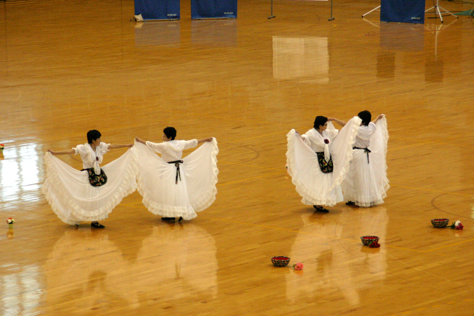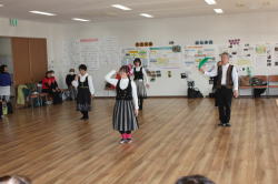 ![]() POEMフォークダンスクラブが出演し、 ハ、ハル・ハ、ヤローク ポロネーズ ロシアン・スイート 365日の紙飛行機の4曲を踊りました。 |