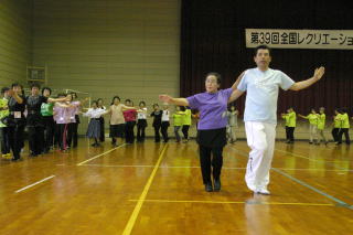 | 前田先生の踊りもスタイルもかっこよくて、レクダンスの愛好者が増えそうでした。 午後からは見学に来られた子どもさんも仲間に入って踊り、まさにすぐ踊りたくなるレクダンスでした! |