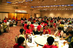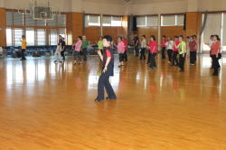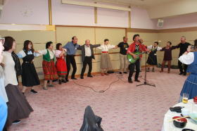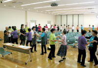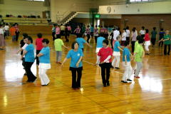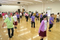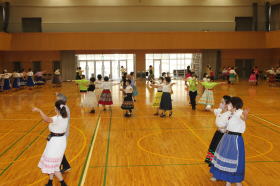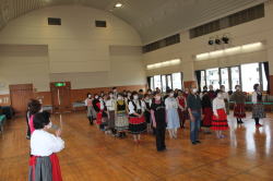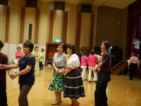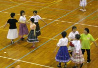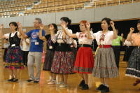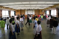 | 午後からの交流会には100人以上の日連会員が集まり、民踊、ラウンドダンス、スクェアダンス、 カントリーダンス、レクダンス、フォークダンスを楽しみました。 でも専門外のダンスはやっぱり難しい! |