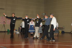 | アメリカの踊り7曲、ラウンドダンス1曲、民踊2曲、計9曲をユーモアたっぷりのご指導で楽しく踊りました。パーティーや発表会で踊りたいと思う曲ばかりでした。 | |