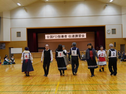 | 北海道から九州まで全国各地から受講生が集まり、講師と日連からフォークダンス委員長・事務局長、カメラマン等7名をお迎えして華やかにそして盛大に講習会を開催することができました。 2019年に発売されるDVDが楽しみです。 |